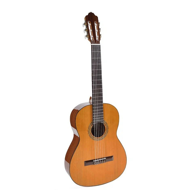 Классическая гитара 4/4, верхняя дека - массив кедра, нижняя дека и обечайка - сапелли, гриф - окуме, накладка на гриф - палисандр, цвет натуральный.