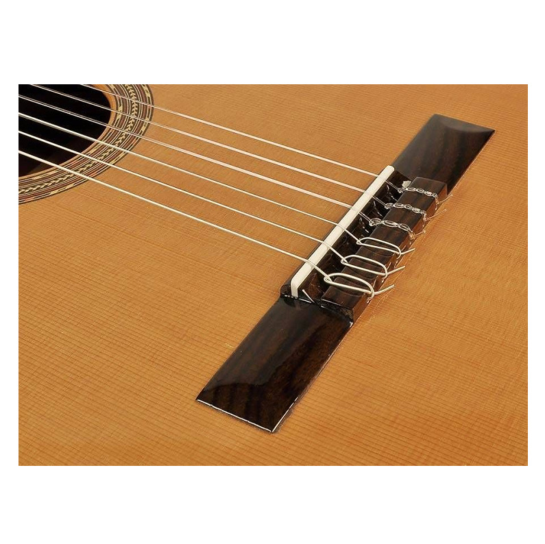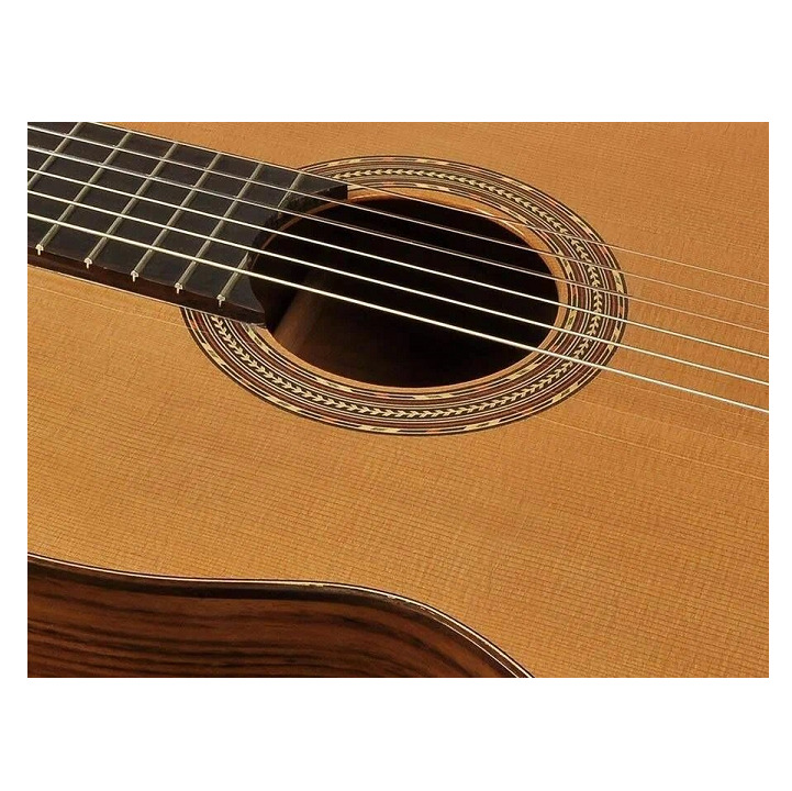 Классическая гитара 4/4, верхняя дека - массив кедра, нижняя дека и обечайка - ламинат монгой, гриф - окуме, накладка на гриф - палисандр, цвет натуральный