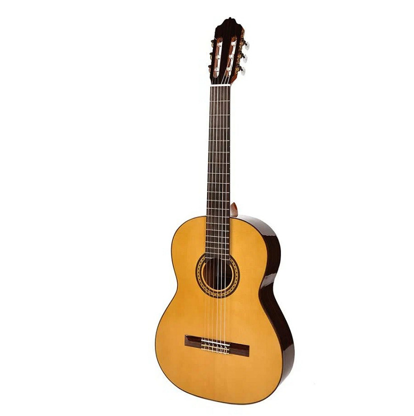 Классическая гитара 4/4, вехняя дека - массив ели, нижняя дека и обечайка - палисандр, гриф - окуме, накладка на гриф - палисандр, цвет натуральный