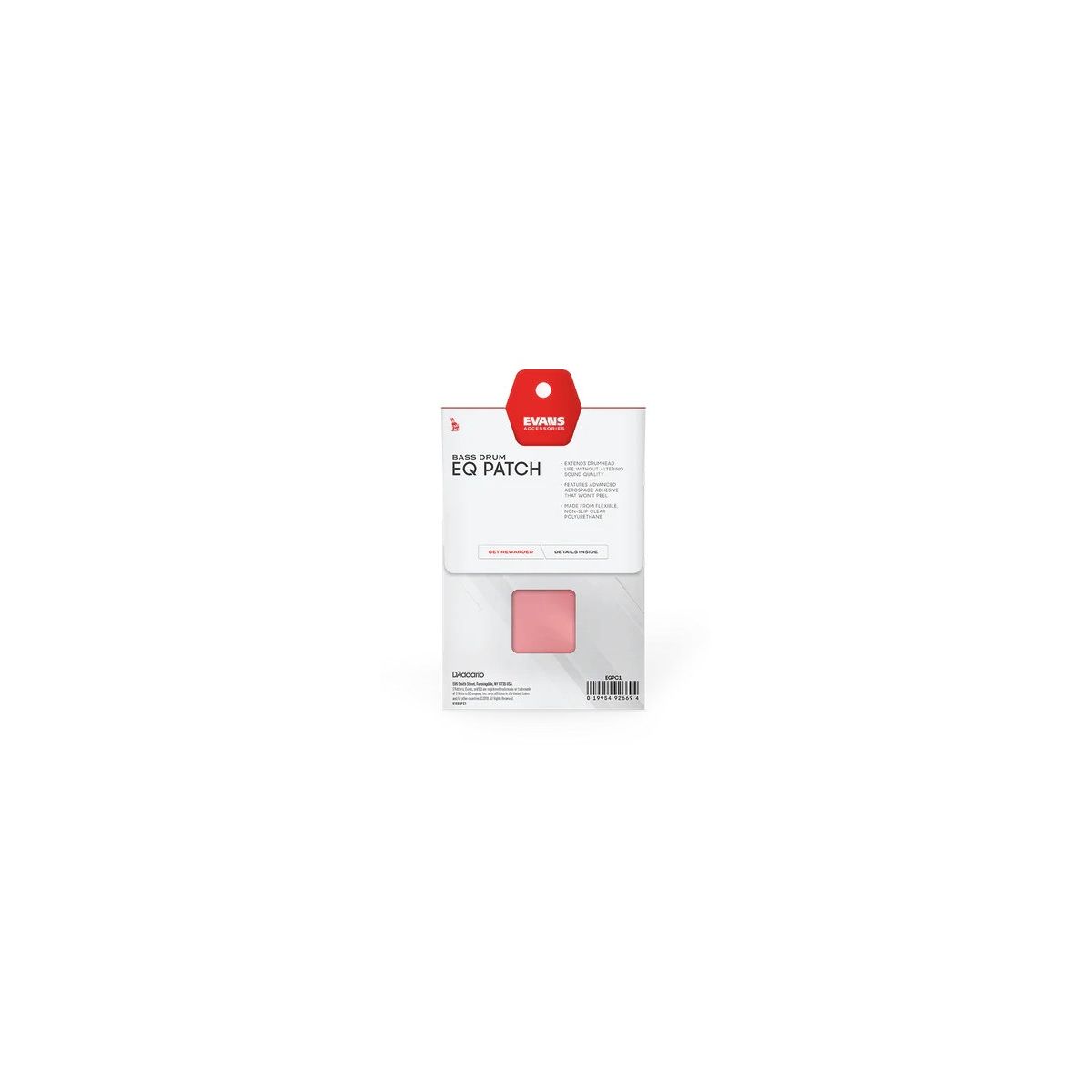 EVANS EQPC1 — это прозрачная нескользящая пластиковая наклейка для пластика бас-барабана, которая усиливает атаку и делает пластик более плотным, не влияя на качество звука.