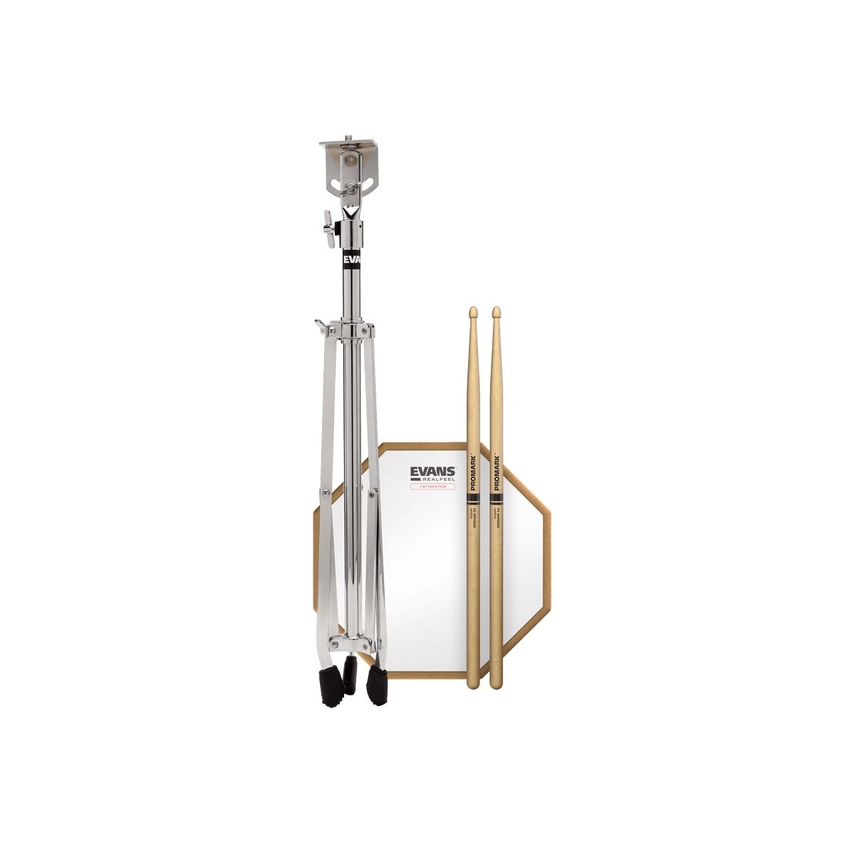 Состав набора: пэд, стойка Evans ARFSTD, барабанные палочки ProMark Rebound 5A Hickory с деревянным наконечником.