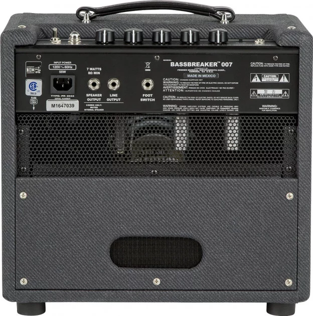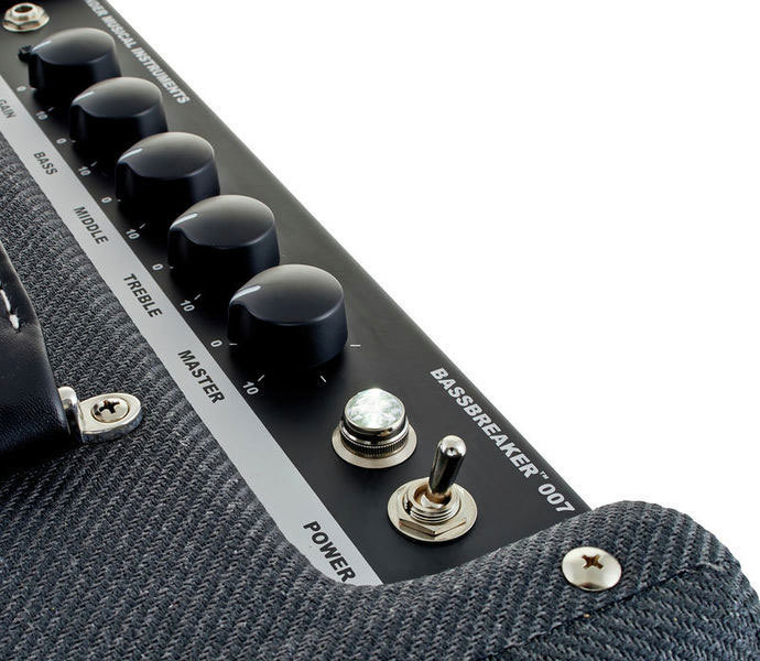 Мощный и неприхотливый, усилитель Bassbreaker 007 при своих скромных размерах обладает по-настоящему "большим" звуком. Предусилитель на основе двух вакуумных ламп 12AX7 и оконечный усилитель на одной лампе EL84 позволяют развить мощность 7 ватт усиления класса A. Bassbreaker 007 оборудован традиционными регуляторами чувствительности и тембра, которые дополняются привлекательной опцией — отключаемым бустером верхних частот, обеспечивающим более мощный перегруз с выраженными гармониками. При работе на максимальной чувствительности 007 звучит просто великолепно, не искажая динамики и собственного характера звучания вашей гитары. Встроенный линейный выход на разъеме "джек" 6.3 мм позволяет подключаться к звукозаписывающему оборудованию или дополнительному, более мощному усилителю. Неповторимость дизайна подчеркивается "блоковым" логотипом Fender, темно-серой лакированной твидовой отделкой, черной ручкой из искусственной кожи и большими удобными регуляторами.