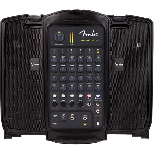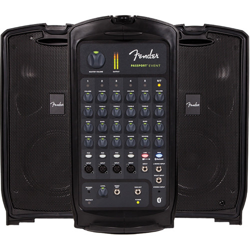 Внутри комплекта находятся две пассивных широкополосных акустических системы, высококлассный усилитель мощности класса D, многофункциональный микшерный пульт с семью каналами (4 моно Mic/Line, 1 стерео), комплект кабелей коммутации. Система имеет поддержку беспроводной Bluetooth коммутации, общая номинальная мощность системы составляет 375 Ватт. Если Вы желаете купить мобильный комплект автономной звукоусиливающей аппаратуры, Fender Passport Event предлагает оптимальное сочетание высококачественного звучания и функциональных возможностей от одного из мировых лидеров в сфере производства музыкального оборудования высшего класса!
