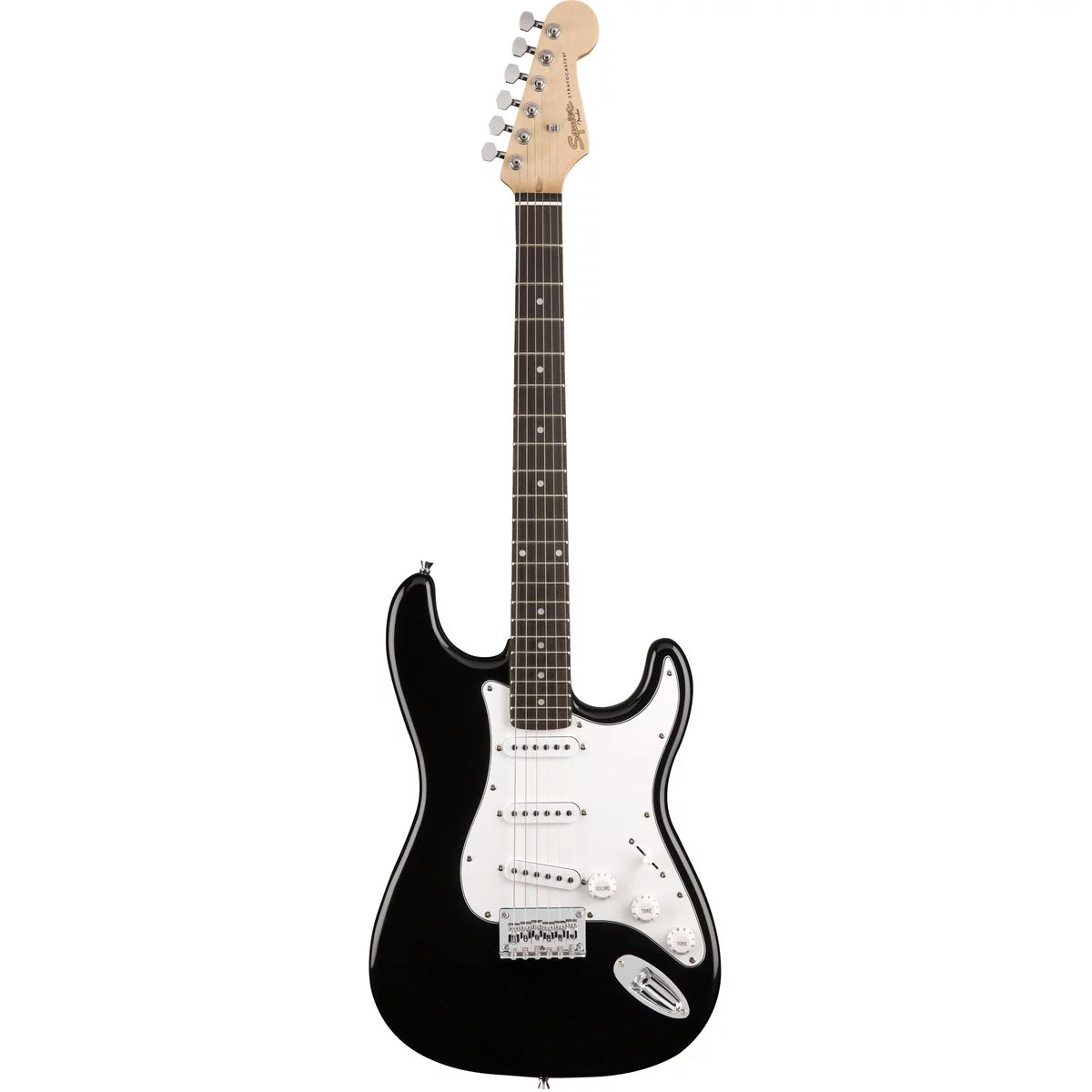 Squier Stratocaster представляет собой доступную и простую электрогитару, выполненную в классическом узнаваемом корпусе. Инструмент отличается аутентичной конструкцией, предполагающей наличие кленового грифа на 4 болтах для обеспечения той самой яркости и «стекла», за счет которых так знаменита модель Stratocaster. Мензура равняется стандартным 25.5 дюймам, а радиус накладки достигает 9.5 дюймов. Гриф имеет максимально удобный профиль Modern «C», 21 лад размером Narrow Tall, а также пластиковый порожек шириной 1.65 дюйма. За формирование звука отвечают три стандартных пассивных сингла Standard Single-Coil Strat, которые обладают ярким и звонким характером, что позволяет гитаре разборчиво звучать как на чистом звуке, так и при включении в перегруженный канал усилителя или педаль эффектов. Для переключения датчиков имеется 5-позиционный свитч с положениями нэк, средний + нэк, средний, бридж + средний, бридж. Для настройки тембра есть общий регулятор громкости и две ручки тона для нэкового и среднего датчиков. Наконец, нижний струнодержатель представляет собой традиционную тремоло-систему Synchronized Tremolo с 6 седлами, позволяющую изменять высоту тона вниз и немного вверх.