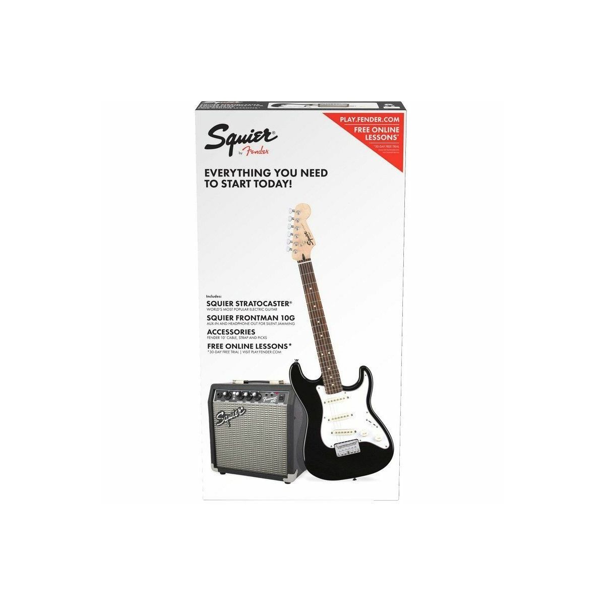 Fender Squier Stratocaster Pack – это гитарный комплект для начинающих музыкантов, состоящий из шестиструнной праворукой электрогитары Squier Stratocaster и компактного комбоусилителя Fender Frontman 10G. Помимо этого в состав набора входят такие аксессуары, как инструментальный кабель, ремень, мягкий чехол и медиаторы, что в сумме позволяет сразу получить все необходимое для начала занятий и обучения игре на гитаре.