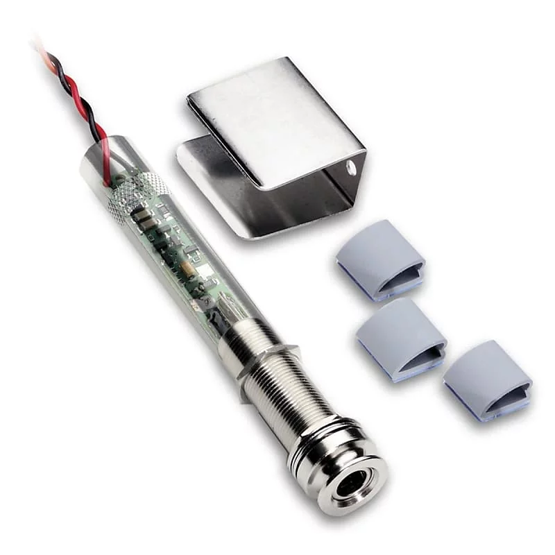 Миниатюрный активный предусилитель интегрированный в гнездо jack 1/4" с клеммами для батареи.