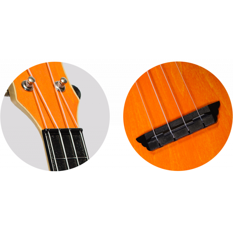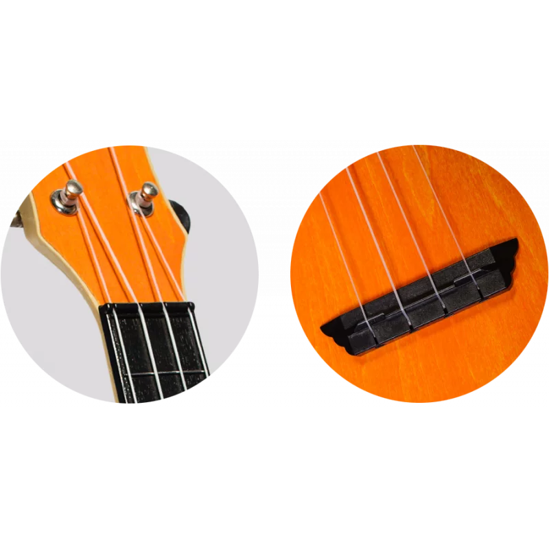 Укулеле сопрано, корпус: пластик, верхняя дека: липа, цвет - оранжевый