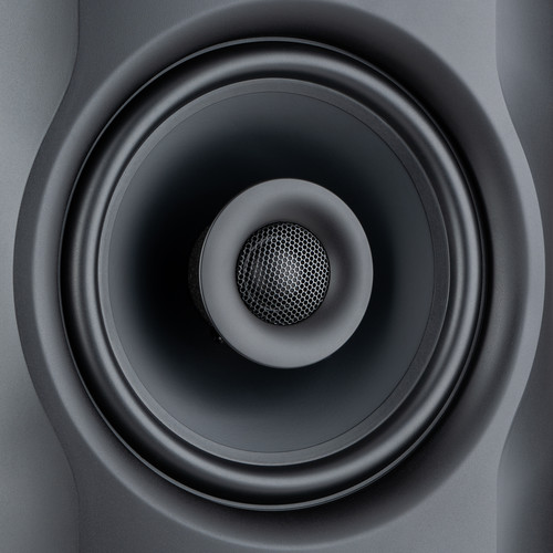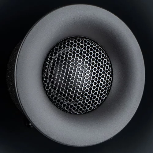 В центре вуфера размещен 25 мм шелковый купольный твиттер в коаксиальной конфигурации. Использование этой технологии (уникально для данной ценовой категории» превращает монитор в «точечный» источник, то есть, весь звук излучается из одной точки, а не из двух, разнесенных на 25 см. Это критически важно для улучшения характеристик вне оси, а также позволяет сделать монитор более компактным.