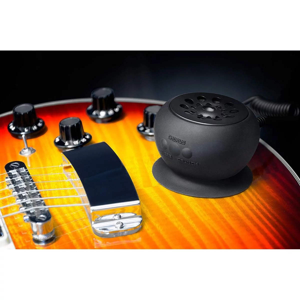 Strum Buddy – 6Вт усилитель, который крепится к гитаре на присоске и питается от встроенного аккумулятора. Он не только усиливает звук вашей электрогитары, но и обладает встроенными эффектами: встроенным дисторшн, хорусом и реверберацией.