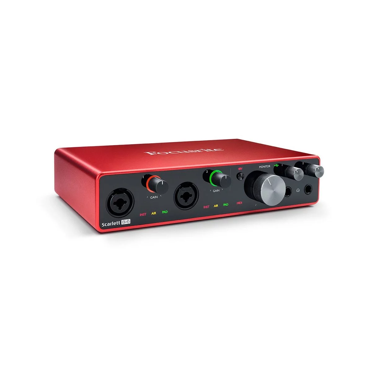 Scarlett 8i6 приспособлен к интенсивной работе в сложных условиях и подключается к компьютеру Mac® или PC обычным USB-кабелем. В комплект поставки входит все необходимое для работы программное обеспечение: две полнофункциональные цифровые рабочие аудиостанции (Ableton® Live Lite™ и Pro Tools® First Focusrite Creative Pack); Time и Tone Bundle компании Softube; Red Plug-in Suite компании Focusrite и один из четырех виртуальных клавишных инструментов Addictive Keys компании XLN Audio на выбор.