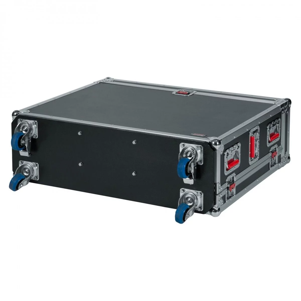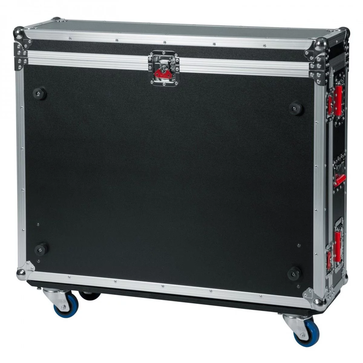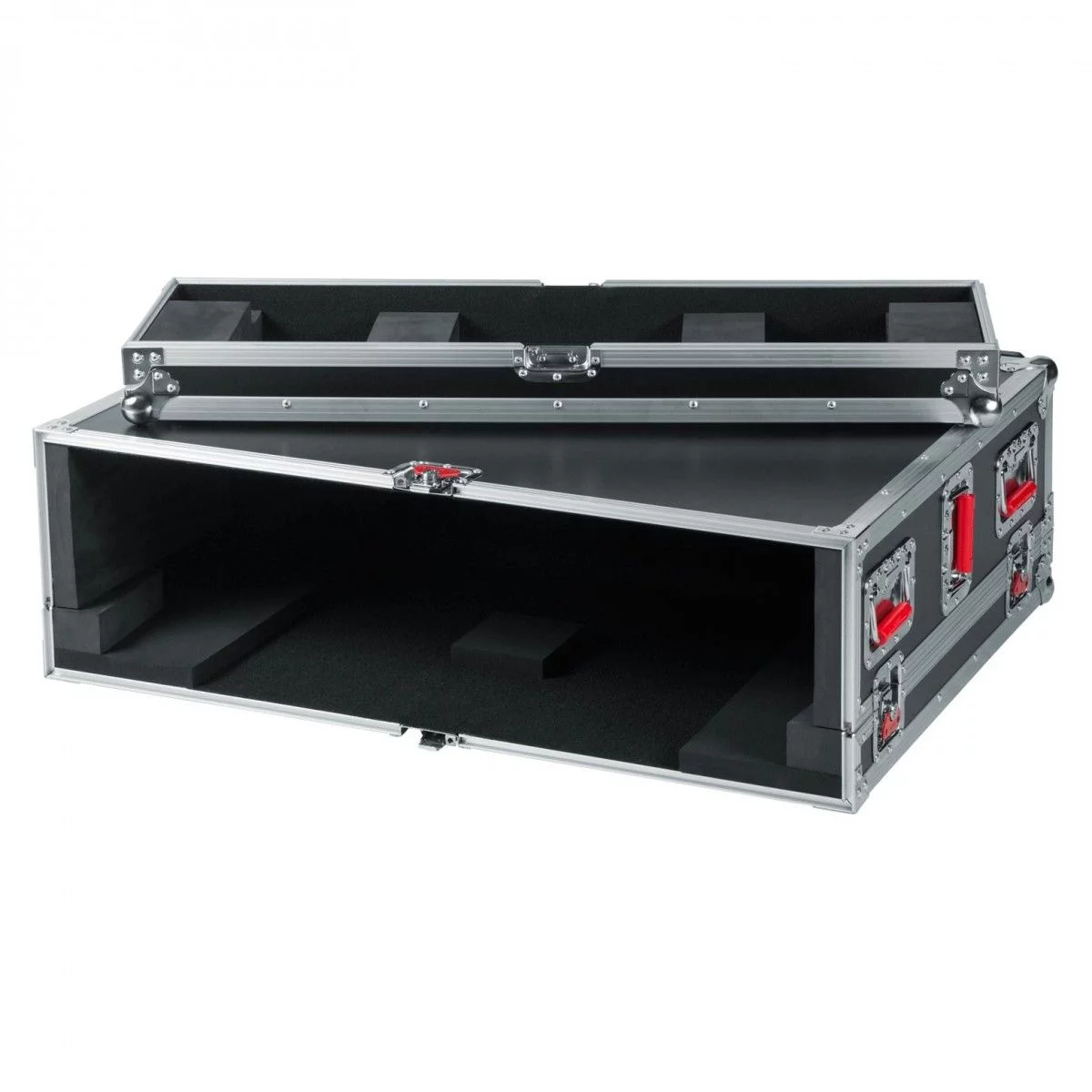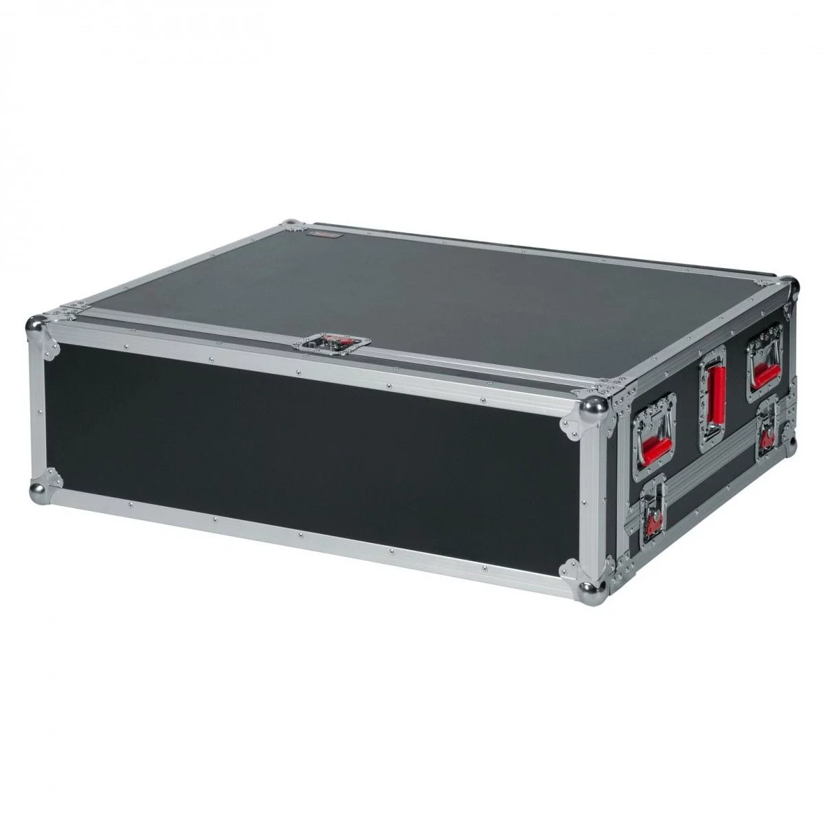 Флайт-кейсовые эксцентрик-замки и пружинная ручка для переноски с красной отделкой.