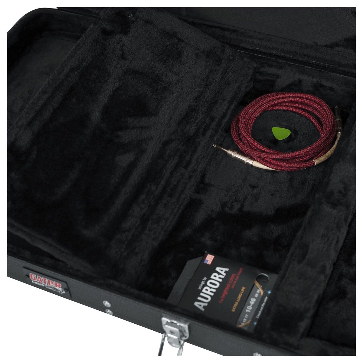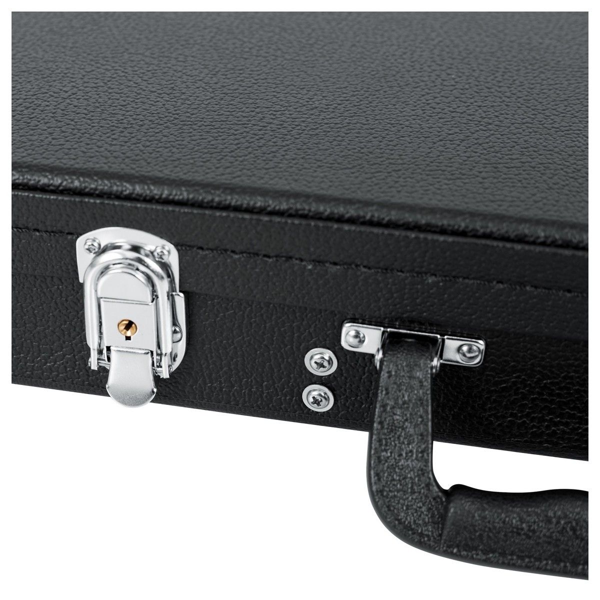 Плюшевая отделка нащищает от царапин. Большой внутренний отсек для хранения подходит для всего, от ремней и тюнеров до медиаторов и каподастров. Хромированные запирающиеся защелки имеют надежную фиксацию, а эргономичная ручка для переноски идеально уравновешивает вес корпуса.