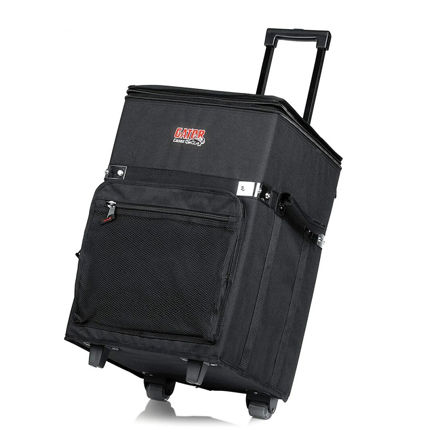 Сумка на колёсах для транспортировки различного оборудования, со съемным верхним лотком для хранения кабелей, микрофонов и пр., на колесах, с выдвижной ручкой, 13.5"X12.75"X14"