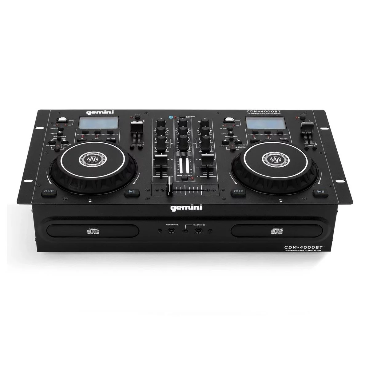 DJ-плеер Gemini CDM-4000BT USB/CD — это мощная и недорогая система для DJ, которая предоставляет необходимые в использовании функции по поиска и воспроизведению треков на двух CD-деках, а также потоковую передачу по Bluetooth.