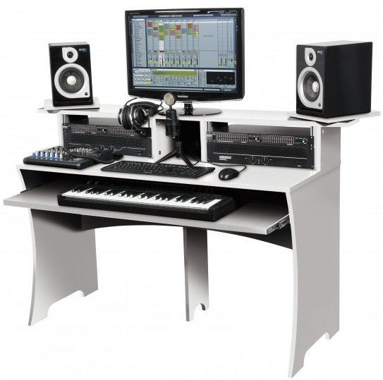 Рабочее место для компьютерной студии, 2 рэковые стойки х 4U, с местом для студийных мониторов и синтезатора, цвет белый
