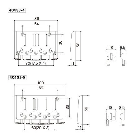 Серия басовых бриджей GOTOH 404 – это универсальные (top-load или струны сквозь корпус) бриджи модернового типа. Массивная станина бриджей сделала из закаленного цинка. А седла делаются из латуни или стали, в зависимости от конкретной модели.