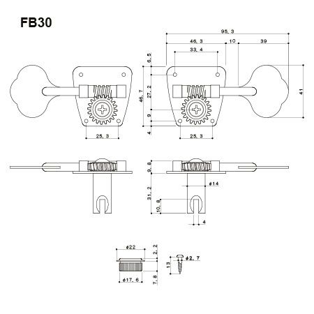 Басовые колки серии GOTOH FB30 повторяют визуальный стиль и посадочные габариты, колков, которые ставились в 70-х годах (и ставятся на современные реплики) на P-bass и J-bass. Соблюдены все необходимые традиции – бутон «клевер», открытый механизм, солидная масса, при существенно более точной и надежной механике.