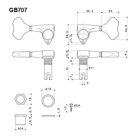 Серия басовых колков Gotoh GB 707 выполнена в самом, пожалуй, популярном современном формате герметичных (sealed) колков c одним фланцем. Колки такого формата широко применяются производителями на моделях «модерновго» стиля и колки Gotoh GB 707 обычно встают на фабричные посадочные места, как «родные» .