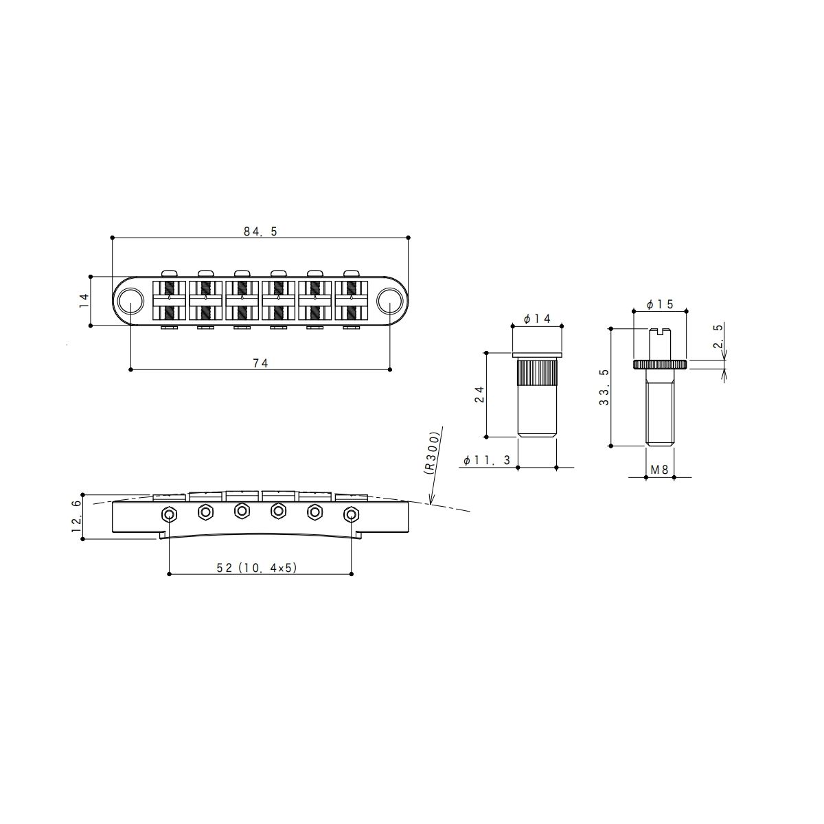 *Tune-O-Matic может использоваться в конфигурациях с различными струнодержателями (а также без таковых), поэтому струнодержатель приобретается отдельно.