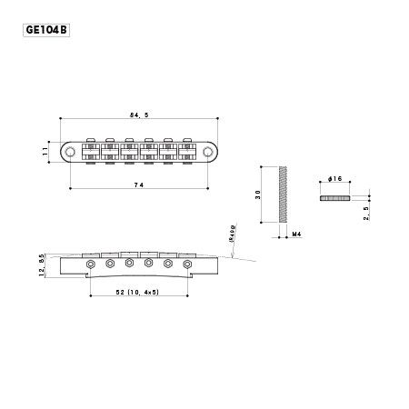*Tune-O-Matic может использоваться в конфигурациях с различными струнодержателями (а также без таковых), поэтому струнодержатель приобретается отдельно.