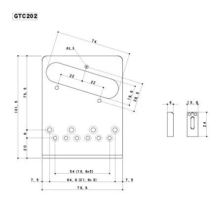 Фиксированные бриджи GOTOH GTC-202 относятся к типу «modern tele» c шестью седлами «стратовского» типа и отсутствием бортика у станины.