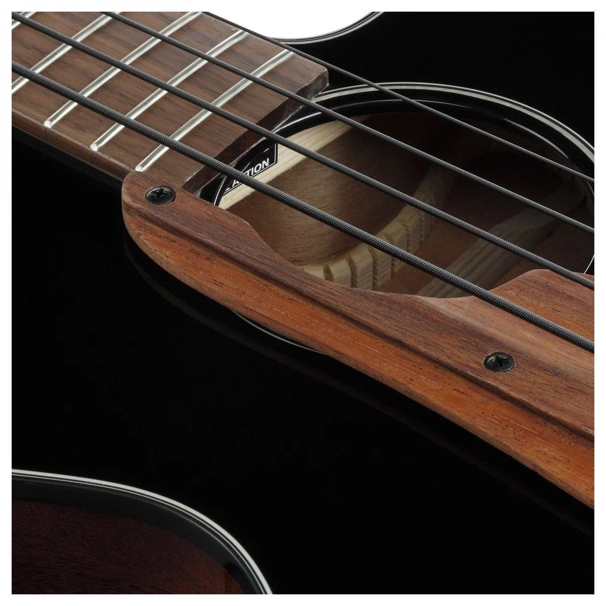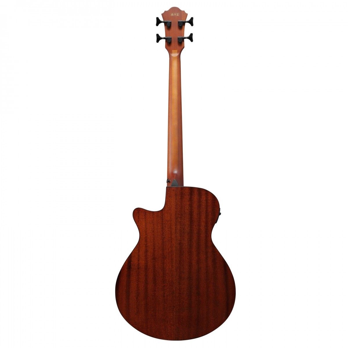 IBANEZ AEGB24E - электроакустическая бас-гитара гитара в элегантном корпусе AEG c одним вырезом, выдающая мощное, сбалансированное акустическое звучание. Верхняя дека инструмента выполнена из сапеле, задняя дека и обечайка - сапеле. Гриф 3 куска ньятон/клен. На грифе 21 лад с инкрустацией белыми точками, мензура 815 миллиметров. Накладка из ореха, радиуса 400 мм. Модель оснащена звукоснимателем собственного производства Ibanez Undersaddle с компактным и простым предусилителем AEQ-2T. Звучание настраивается регуляторами громкости, Bass и Treble. Предусмотрен встроенный тюнер с четким жидкокристаллическим дисплеем. Модельный ряд AEGB24E представлен в двух вариантах цветового исполнения. Гитара AEGB24E-BKH стильного глянцевого цвета Black High Gloss с головой грифа в цвет корпуса, литыми черными колками. На инструменте установлены струны Ibanez IABS4XC32 с карбоновым покрытием.