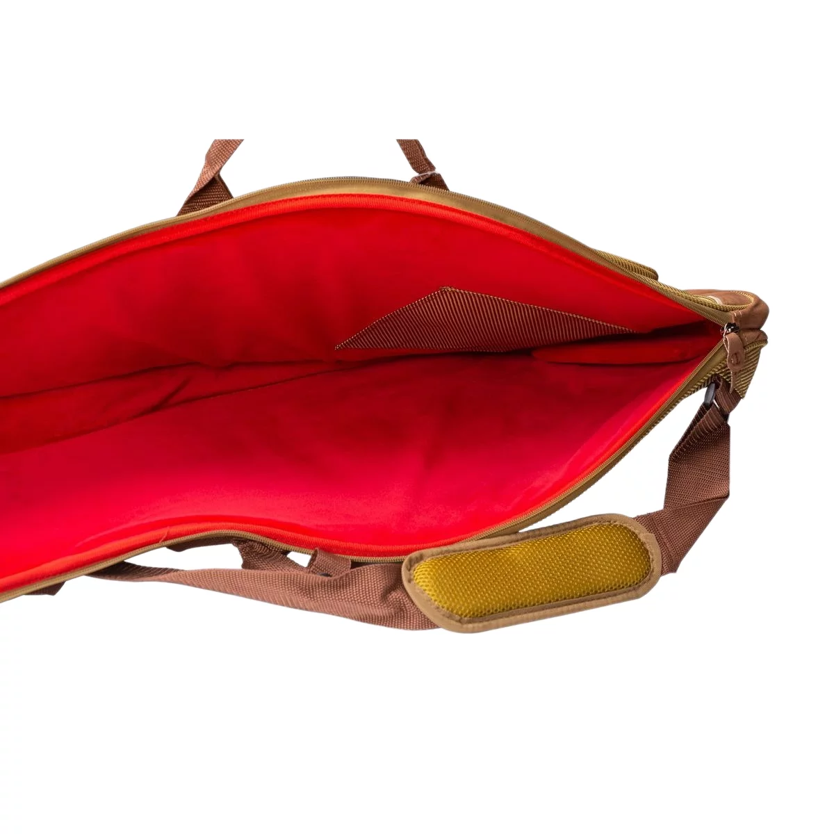 Чехол Ibanez IAB541TW– фирменный аксессуар от знаменитого японского гитарного бренда, дизайнерский мягкий чехол для акустической гитары элегантного светло-коричневого цвета с коричневыми вставками. Поверхность чехла – влагостойкий полиэстер. Для надежной защиты инструмента предусмотрена обивка толщиной 15 миллиметров с дополнительными утолщениями по бокам и снизу, специальная противоударная система Powerpad. Гриф инструмента прочно фиксируется ремнем, это исключает перемещение гитары при транспортировке, предотвращает появление царапин и потертостей. Чехол закрывается на молнию. Для размещения аксессуаров предусмотрено четыре кармана разного размера на молниях, в которые можно положить ноутбук или планшет, наушники, струны, тюнер и многое другое. Сзади есть два ремня с мягкими накладками, чехол можно носить за спиной как рюкзак, сбоку и на задней поверхности – прочные ручки для переноски, заднюю ручку можно использовать, чтобы удерживать инструмент в вертикальном положении.