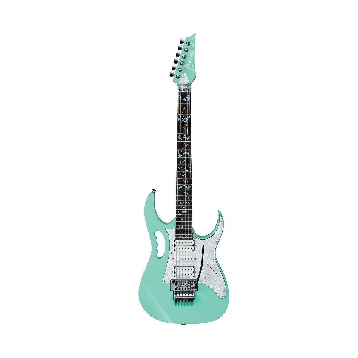 Электрогитара JEM70V-SFG представлена в категории шестиструнных гитар под правую руку. Мензура гитары имеет 25,5 дюймов. Электрогитара имеет оригинальный цвет в лучших традициях Стива Вая (Steve Vai), это оригинальный салатовый цвет (Lime). Кроме электрогитары в комплекте поставляется качественный жесткий, утепленный кейс.