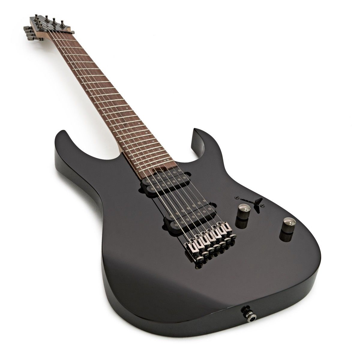 IBANEZ RGMS7-BK - это 7-струнная мультимензурная электрогитара линейки RG. Цвет гитары черный. Гитара представляет собой настоящую рок-машину, способную шикарно звучать в пониженном строе. Инструмент обладает мощным, насыщенным тоном, что важно для передачи тяжелых гитарных рифов нестандартного строя электрогитары. Электрогитара оборудована 5-составным грифом (клен/орех)с накладкой из жатобы. Профиль грифа - Wizard III-7 for Multi Scale 5pc. Дека гитары сделана их махагони. На деку установлен бридж Mono-rail bridge. Количество ладов грифа - 24 (Jumbo), мензура - 686 мм/27" - 648 мм/25.
