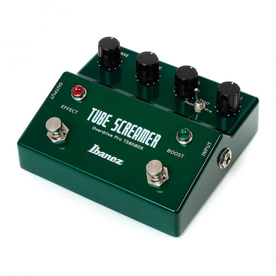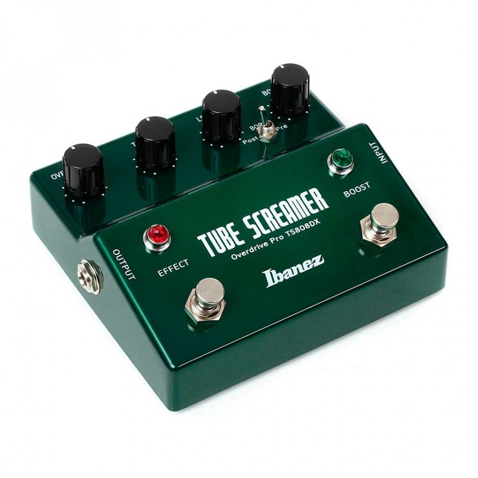 Педаль Ibanez TS808DX Tubescreamer Overdrive Pro фактически представляет собой две педали в одном устройстве. Классическая TS808 Overdrive с микросхемой JRC4558D IC, использующейся во всех классических TS808, дает тот самый знаменитый мягкий звук, а дополнительная цепь «Boost» позволяет прибавить еще 20 децибел громкости одним нажатием на переключатель. Новая версия педали оборудована двумя изолированными переключателями «Overdrive» и «Boost» для полностью независимого управления. Overdrive и Boost также можно использовать совместно, например, для повышения громкости, когда Вы играете с овердрайвом.
