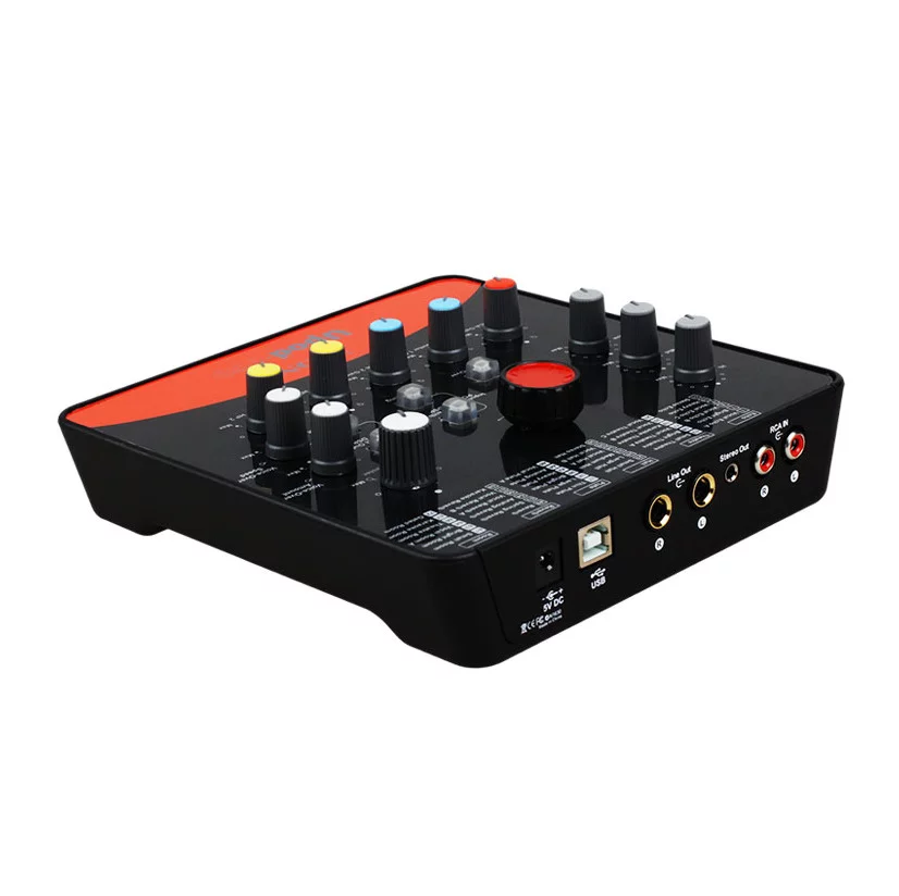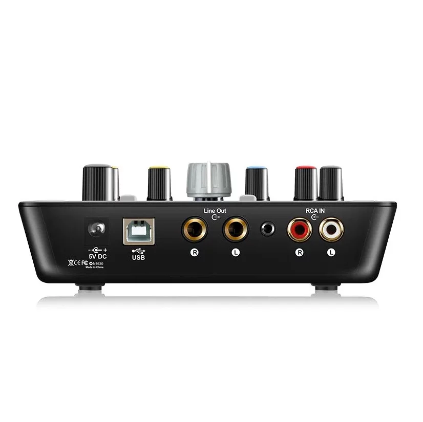 Коммутация с компьютером и подача питания осуществляются по стандарту USB, для чего предусмотрен порт USB-B. Есть разъем для опционального адаптера на 5 V DC, при подключении которого аудиоинтерфейс может работать без компьютера в качестве микшера с эффектами.