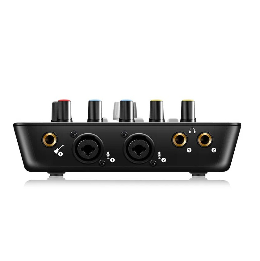 Коммутационные возможности представлены двумя входами на разъемах Combo Jack/XLR для динамических или конденсаторных микрофонов.