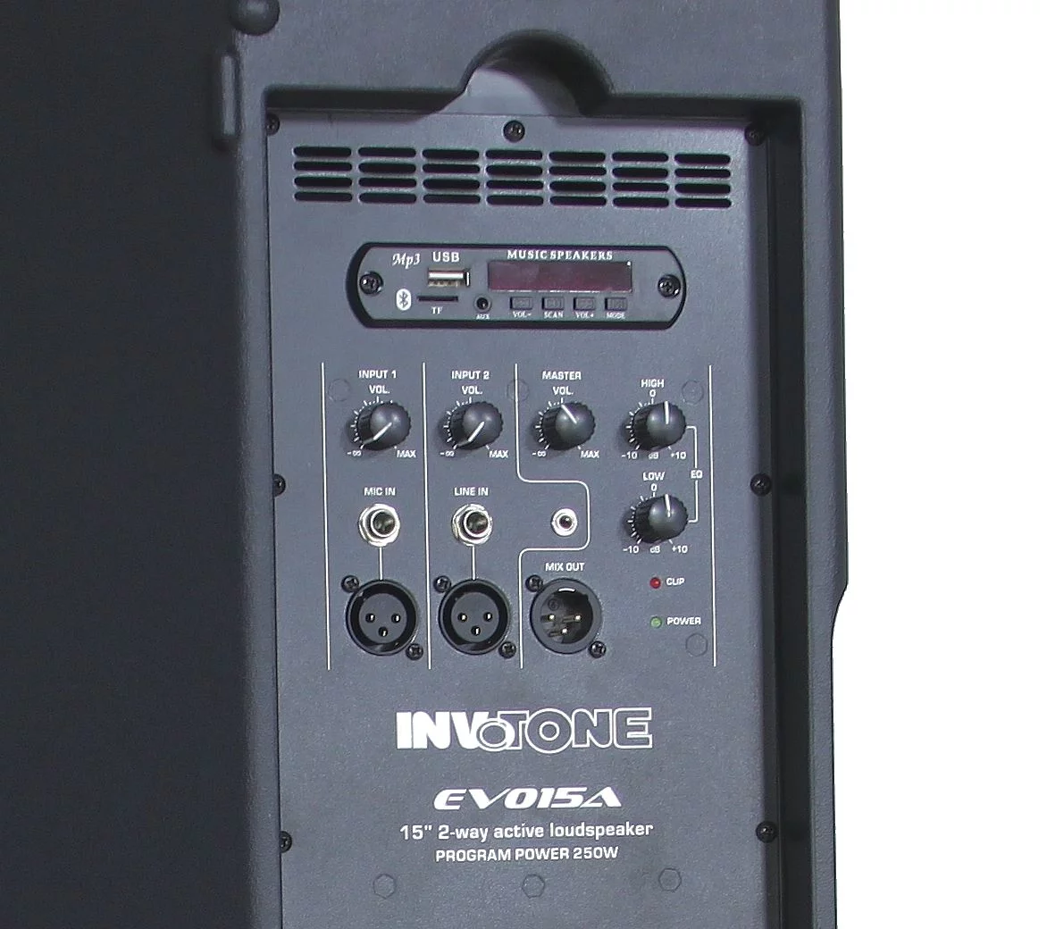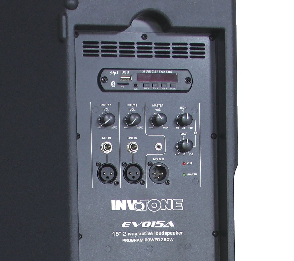 Invotone EVO 15A – 2-х полосная, активная акустическая система со встроенным усилителем мощности класса D c DSP, со встроенным MP3 плеером с возможностью использования носителей USB и microSD для воспроизведения аудио. Подключение по Bluetooth с дальностью работы на расстоянии до 10 метров.
