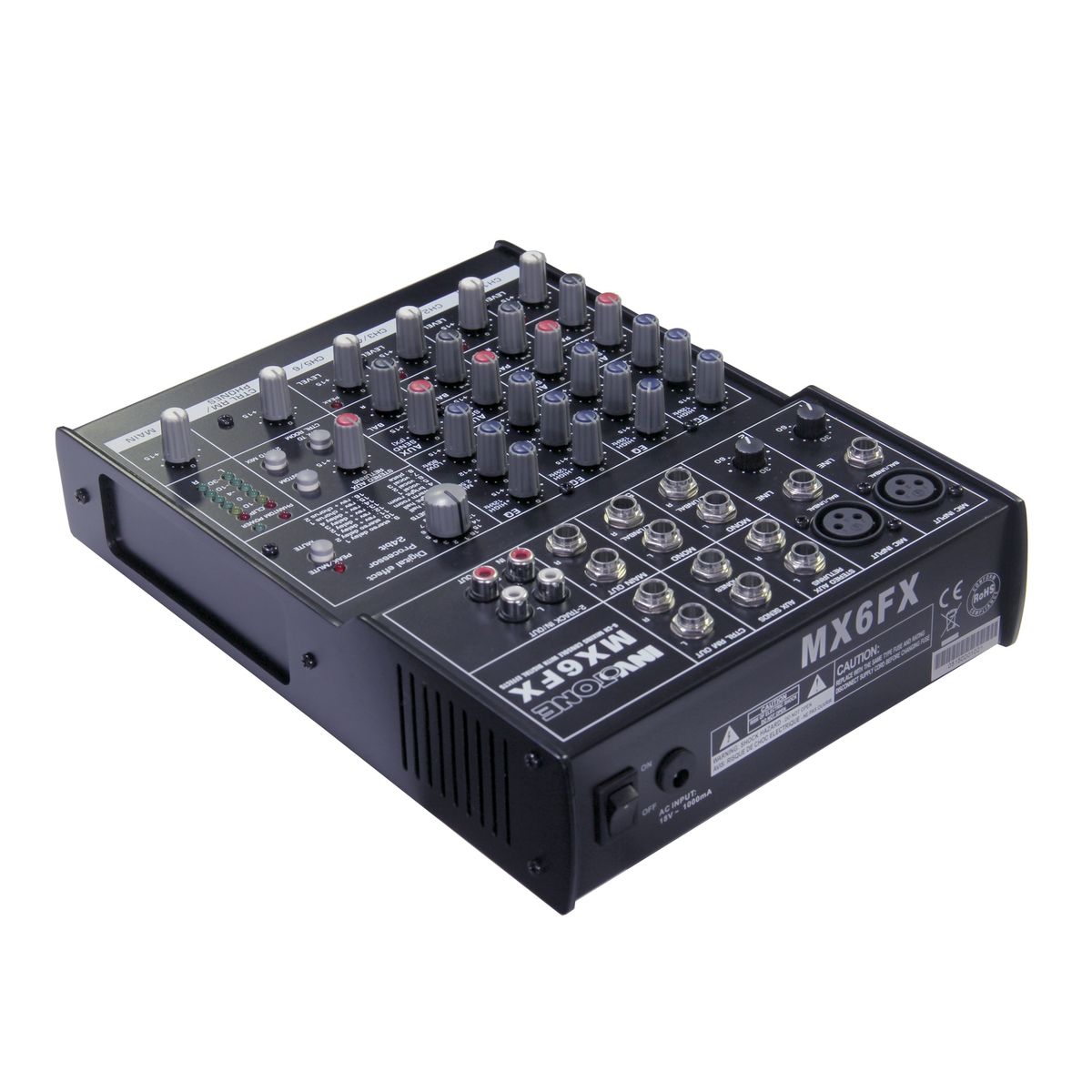 Регуляторы GAIN и возможность подачи фантомного питания +48В на микрофонных входах