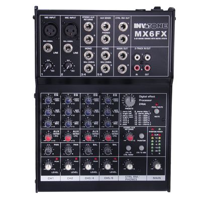 2 монофонических канала с микрофонным входом на разъеме XLR и балансным линейным входом на разъёме 1/4' TRS Jack