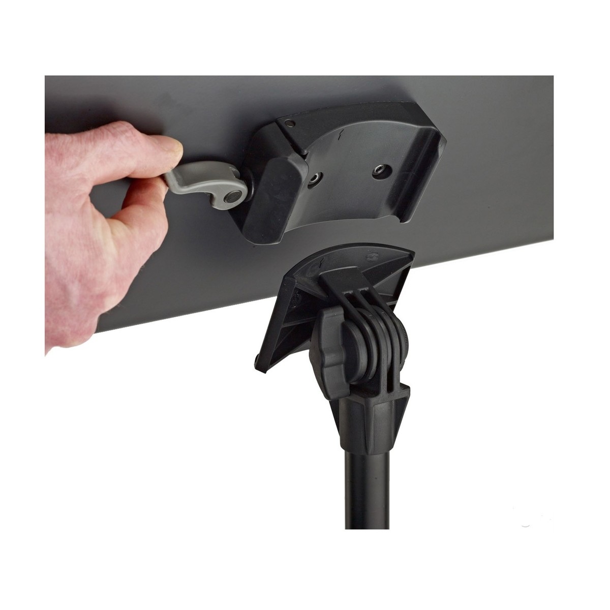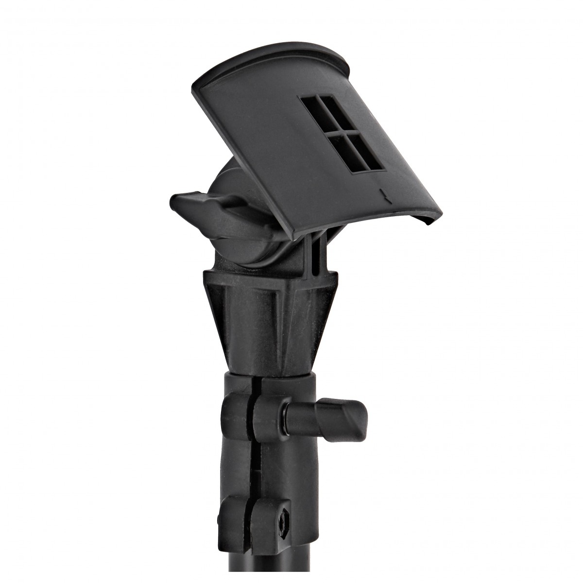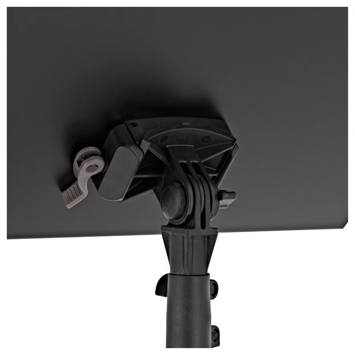Оркестровый пюпитр двухсекционный, телескопический со стальным, быстросъёмным нотным держателем и соединительными узлами из прочного пластика.