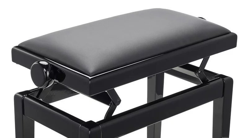 банкетка для пианиста, бук, черная глянцевая, черный кожзам
