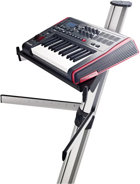 Данная полка предназначена для установки на верхний уровень стойки Spider Pro (18860). На ней можно разместить маленький синтезатор, контроллер, драм машину и т.д. Встроенную ручку можно использовать для прокладки проводов. Полка оснащена бортиком и резиновыми ограничителями по краям.