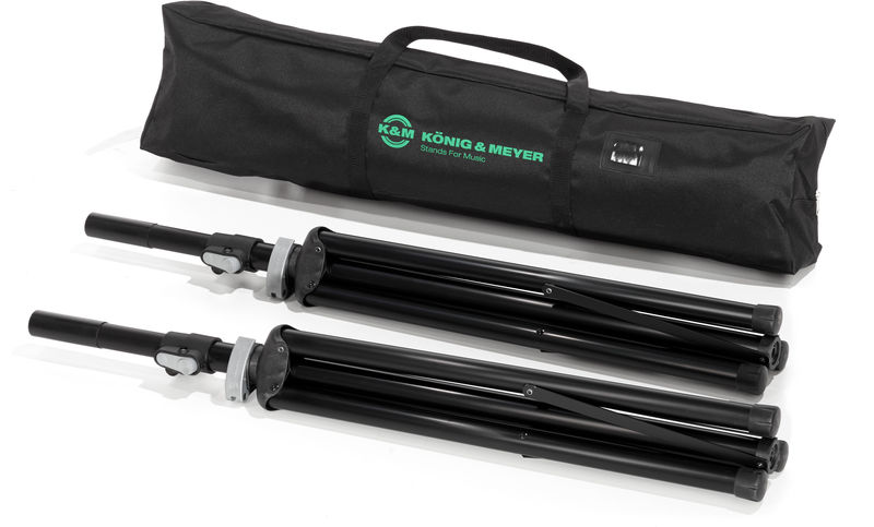 Комплект из двух стоек для акустических систем. Стойки двухсекционные телескопические. Запатентованная система регулировки высоты. Высота регулируется путём нажатия кнопки. В комплекте чехол и адаптеры для установки колонок с отверстиями диаметром 38 mm.