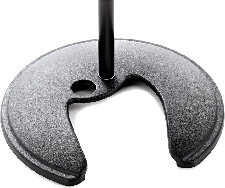 Чугунное круглое основание с вырезом для удобства хранения. Позволяет хранить до 5-ти стоек с аналогичными основаниями на площади, занимаемой одной стойкой. Диаметр 278 mm.