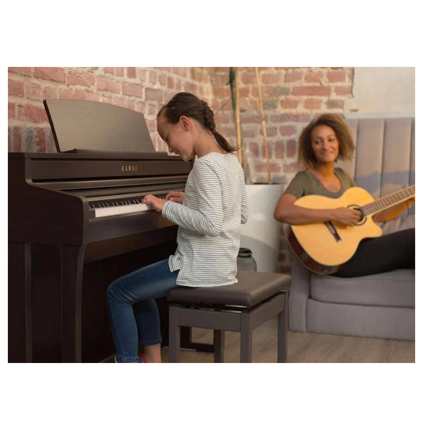 Подключение Bluetooth позволяет использовать Kawai CA501 в качестве колонки Bluetooth. Воспроизводите, например, на своем смарт-устройстве ваши текущие любимые песни на Youtube на инструменте и играйте одновременно. Или слушайте подкаст через мощные стереодинамики, просто потому что вы можете. MIDI и аудио также передается через Bluetooth; это выгодно музыкантам, которые хотят записывать свою игру в DAW, так что ничто не мешает использовать инструмент в качестве основной клавиатуры.