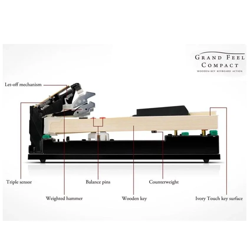 Цифровые пианино оснащено взвешенной 88-клавишной деревянной клавиатурой "Grand Feel Compact" с молоточковым механизмом. Длина клавиш клавиатуры Grand Feel Compact больше, чем у других цифровых пианино; сами клавиши сделаны из дерева. Как и в настоящем рояле, каждая клавиша плавно перемещается по балансиру. При ударе по клавише утяжеленный молоточек поднимается вверх. Точная трехсенсорная технология в клавишах создает оптимальное повторение и позволяет воспроизводить нюансы. На белые клавиши нанесено покрытие, напоминающее слоновую кость (Ivory Touch), что обеспечивает более удобное сцепление с поверхностью и значительно уменьшает проскальзывание.