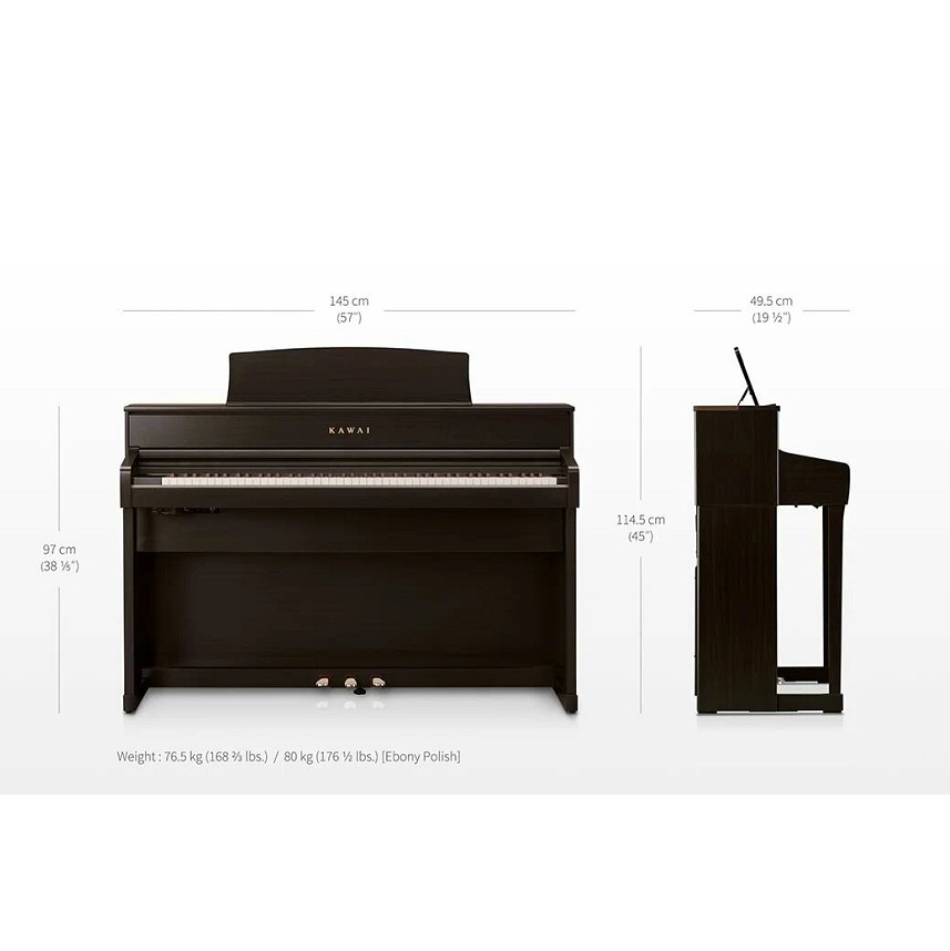 Kawai CA701 доступен в четырех привлекательных вариантах отделки корпуса: Premium Rosewood, Premium Satin Black, Premium Satin White, и роскошный Ebony Polish, что позволяет музыкантам сочетать свое пианино с различными современными интерьерами.