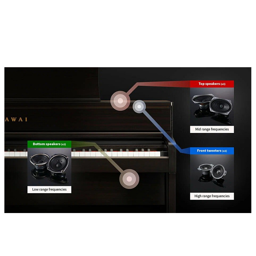 Разработанный высококвалифицированной командой аудио инженеров Kawai, CA701 использует специальные компоненты, предназначенные для воспроизведения аудио хай-энд. Система ЦАП с высокими характеристиками в сочетании с высококачественными усилителями мощности Concert Artist позволяет воспроизводить звуки Shigeru Kawai SK-EX с потрясающей насыщенностью и четкостью.