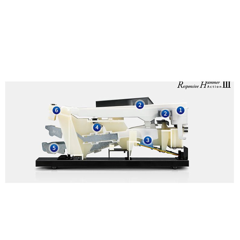 Механика Responsive Hammer III (RHIII) с функцией Let-Off, тройным сенсором и противовесами 88 взвешенных клавиш с покрытием Ivory Touch