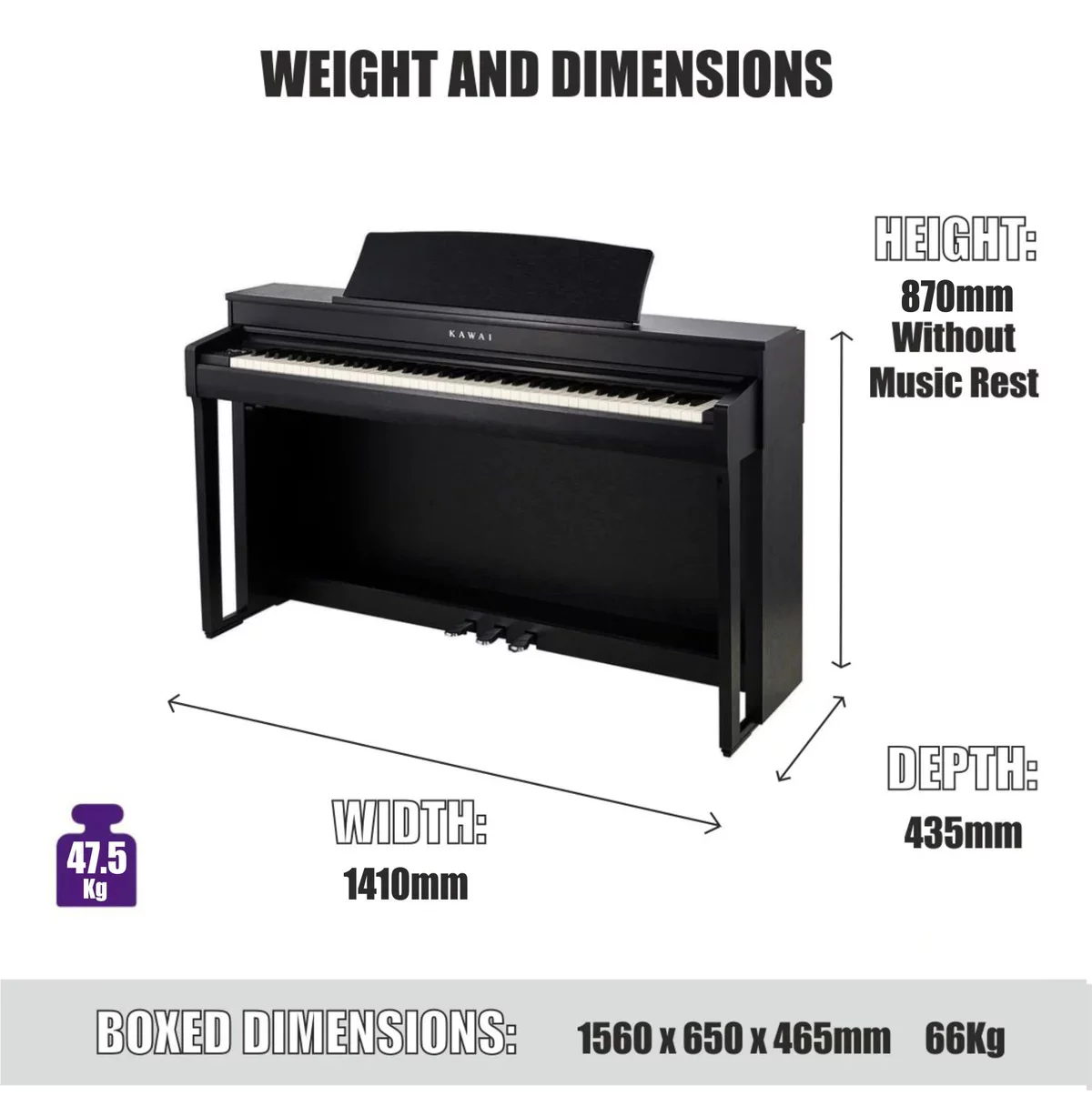 Габариты (без пюпитра): 1410 (Ш) х 435 (Г) х 870 (В) мм