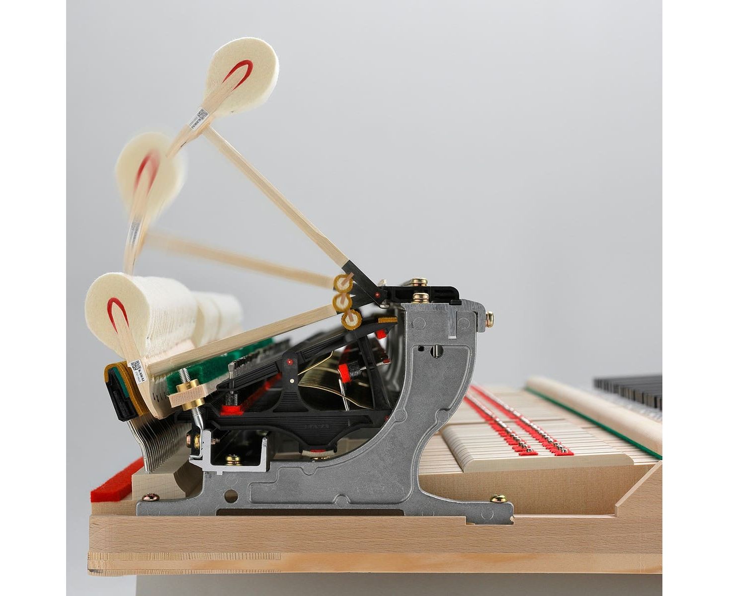 Уникальная механика Millenium III, производимая компанией KAWAI, более чем на 80% выполнена из материалов собственной разработки. Она невероятно вынослива, легка и позволяет пианистам добиваться почти неслышного пианиссимо, редко доступного в роялях других производителей. Что немаловажно, такая механика не реагирует на перепады температуры и влажности в помещении, где находится инструмент.