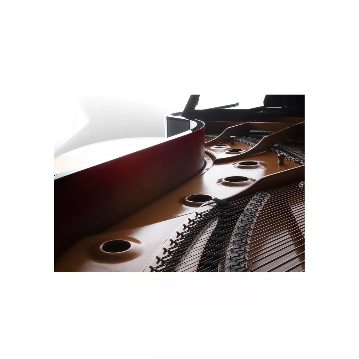 Для того, чтобы обогатить звучание, общая жесткость рамы также была увеличена. Толщина верхней балки, которая крепится к наружному ободу, была увеличена. В результате, колки, вирбельбанк и рама выдерживают нагрузку около 20 тонн. Колки выполнены из углеродистой стали, что значительно продлевает срок удержания настройки.