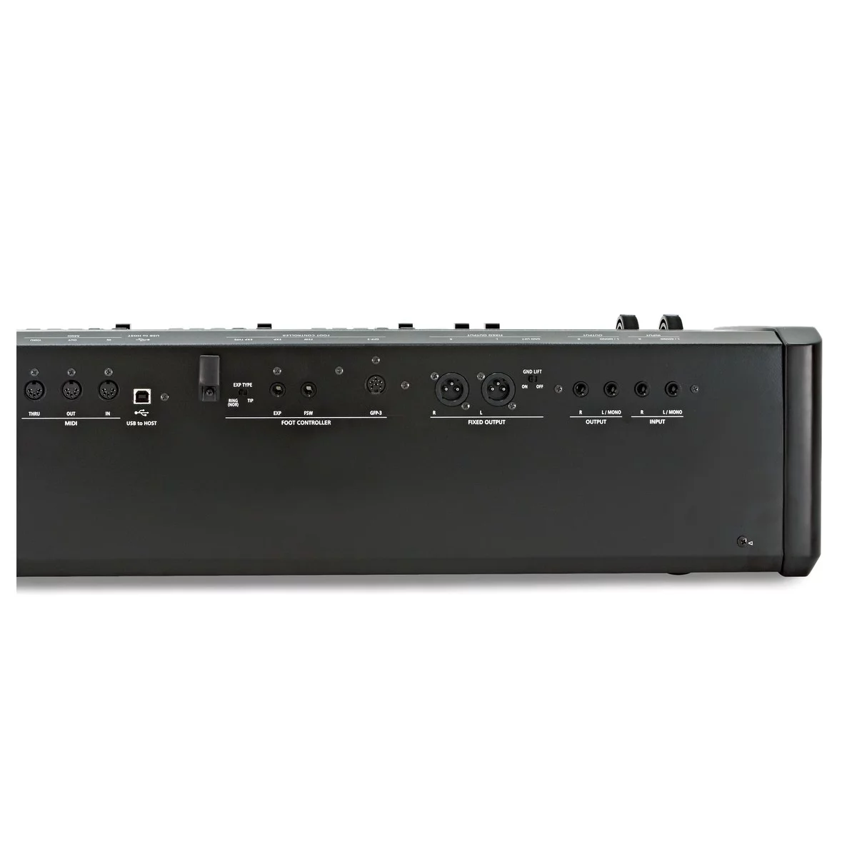 Разъемы: Выход: 1/4” Линейный (Л/Моно, П), XLR (Л, П) с возможностью отключения “земли”, Наушники. Вход: 1/4” Линейный. MIDI и USB: MIDI IN, MIDI OUT, MIDI THRU, USB to Host, USB to Device. Педали: DAMPER/SOSTENUTO/SOFT (для GFP-3), FSW, EXP с переключателем EXP TYPE. Питание: AC IN