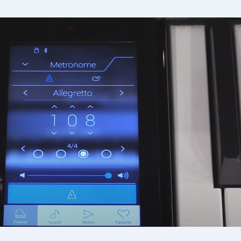 Метроном: 1/4, 2/4, 3/4, 4/4, 5/4, 3/8, 6/8, 7/8, 9/8, 12/8 + 100 ритмов ударных. 10-400 уд/мин (20-800 уд/мин для ритмов с пульсацией восьмыми)
